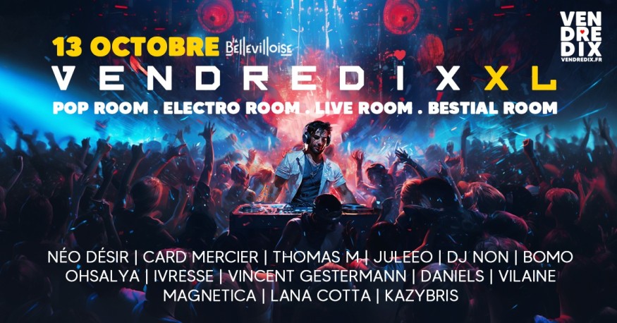 VendrediXXL PARIS | 13 OCT | 19H à 6H | Préventes sur https://vendredix.fr