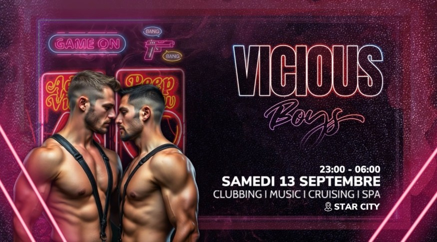 VICIOUS BOYS revient pour une nuit de débauches clubbing Samedi 13 septembre de 22H à 6H au STAR CITY, temple de jeu libertin mythique situé à Pigalle.