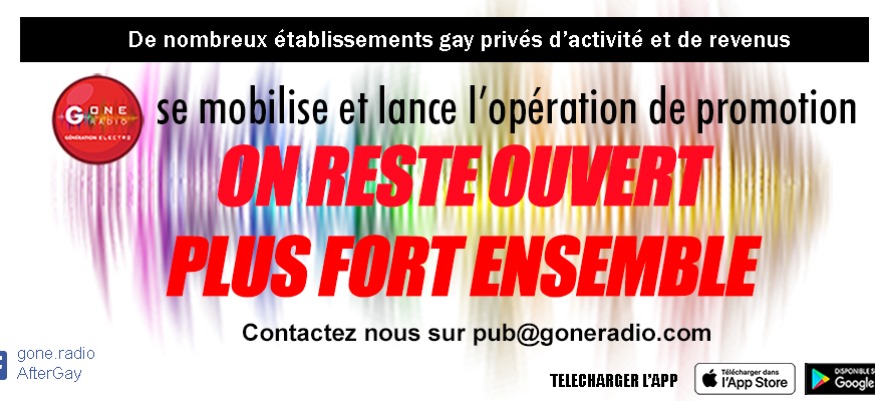 Aujourd'hui, G One Radio lance l'opération "ON RESTE OUVERT - PLUS FORT ENSEMBLE" pour aider les nombreux établissements gays.