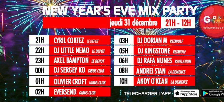 New Year's Eve Mix Party G One, Jeudi 31 décembre dès 21h, les meilleures soirées te font passer en 2021
