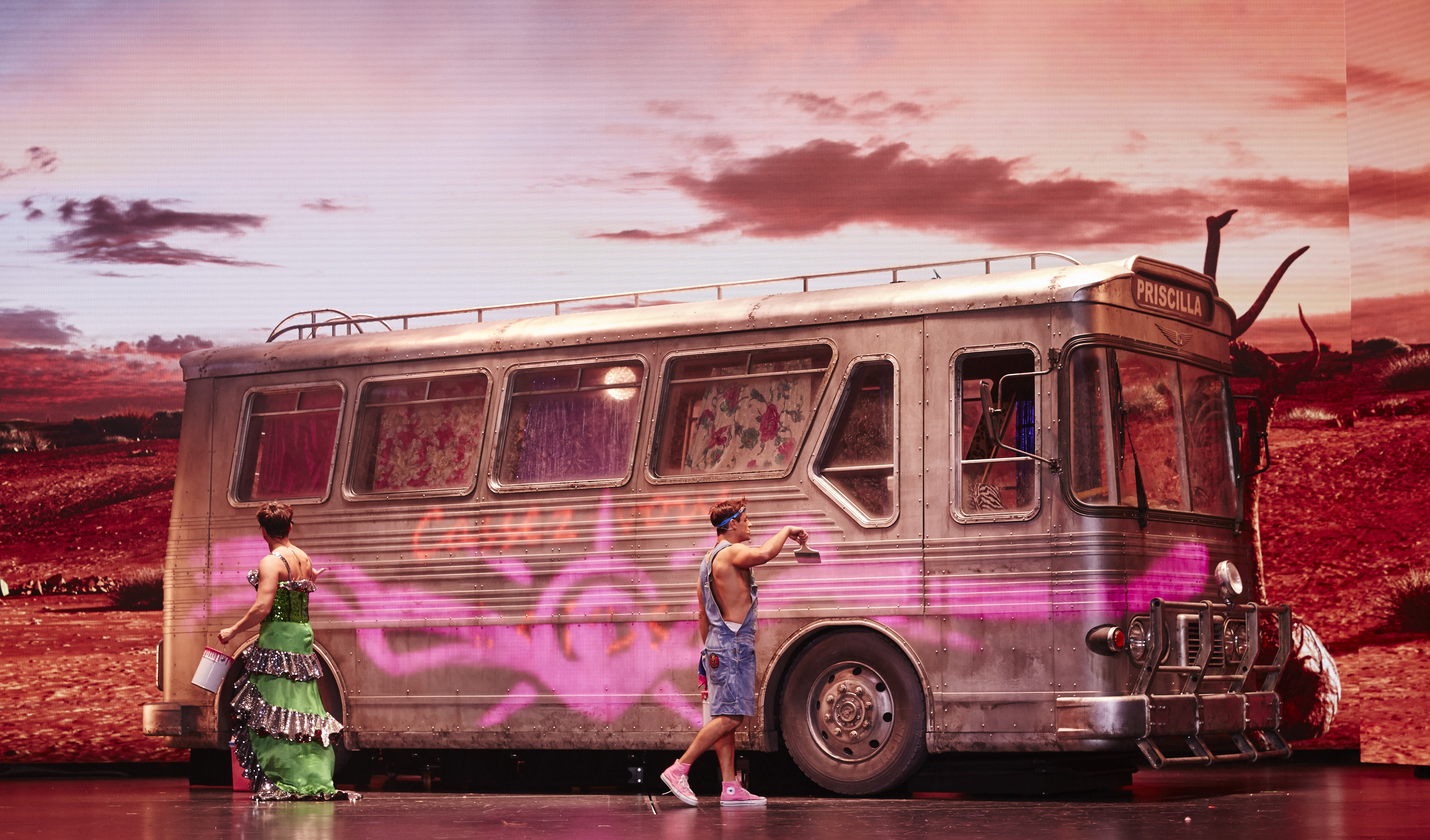 Priscilla Folle du Désert, c’est l’histoire dingue et tout aussi fantasque que le film, haute en couleurs, généreuse et drôle, de 3 amis qui s’apprêtent à traverser le désert Australien de Sydney à Alice Springs pour y présenter leur spectacle de Drag Queen. Ils optent pour un bus qu’ils baptisent Priscilla pour le voyage de leur vie.