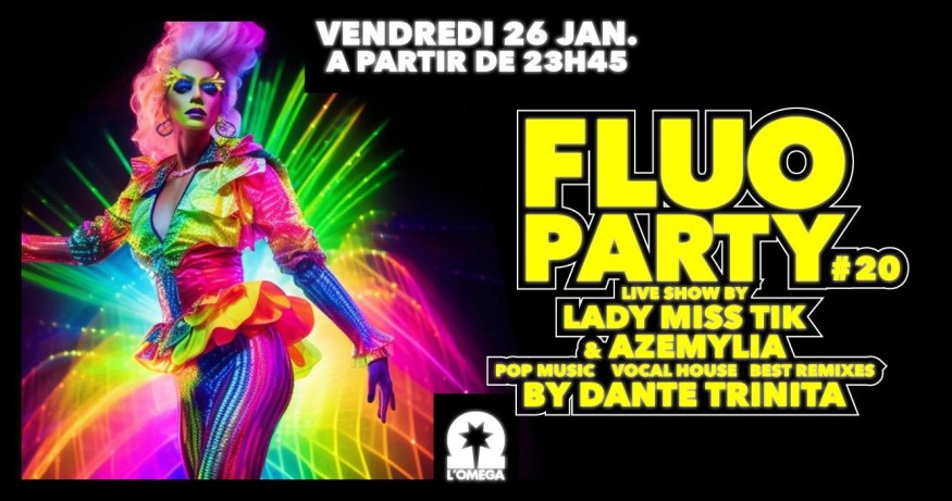 L’Oméga Club Votre club adoré sera complètement FLUO ! Et pour rendre cette nuit inoubliable, les incroyables et incontournables Lady Miss Tik and AZEMYLIA !! animeront la soirée avec des shows époustouflants!!
