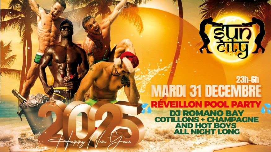 #SunCity #Reveillon #PoolParty #Gay #Paris #NouvelAn #Sexy #OléOlé #Sauna #Fetish #Hot #NewYear #Party #circuit #disco #dance