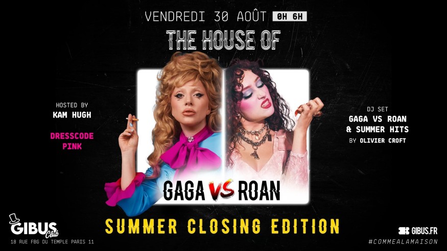 Vendredi 30 aout, c'est la Summer Closing Edition de THE HOUSE qui aura pour thème GAGA VS ROAN. On a démarré l'été avec Mother Monster alors on a décidé de le clôturer avec elle et de mettre aussi en avant celle qui affole les charts : CHAPPELL ROAN.