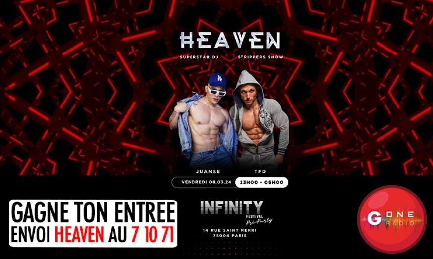 Cette semaine avec G One, gagne ton entrée à la soirée HEAVEN with JUANSE INFINITY FESTIVAL PRE-PARTY vendredi 8 mars !