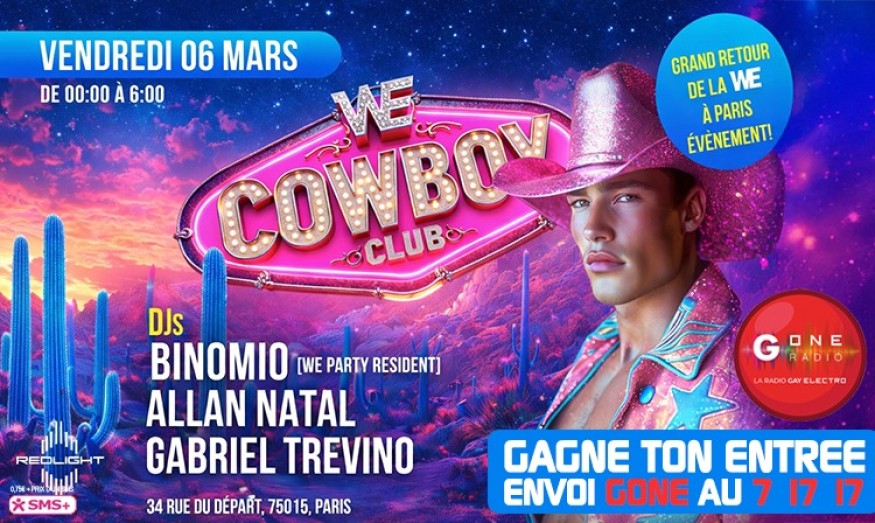 Cette semaine avec G One, gagne ton entrée à la soirée WE Party COWBOY CLUB, vendredi 6 mars.
