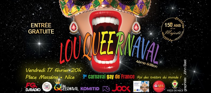 Nice fait partie des trois plus grands carnavals au monde en attirant chaque année près d’un million de personnes sur la Côte d’Azur. Ouvert à toutes et tous, Lou Queernaval, premier carnaval gay de France, s’engage avec humilité et avec sa touche de folie en plus pour faire vivre avec modernité toute la grande tradition populaire du Carnaval de Nice !
