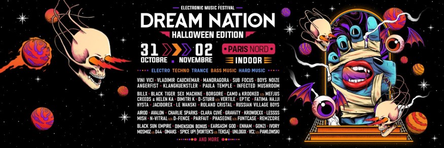 Cette année, le festival Dream Nation repousse toutes les limites pour offrir aux festivaliers une édition spéciale Halloween, transformant le Parc des Expositions Paris Nord en une véritable fête foraine de terreur et de musiques électroniques. Du 31 octobre au 2 novembre 2024, préparez-vous à vivre une expérience immersive où frissons, performances et ambiance halloweenesque se rencontrent dans une ambiance hors du commun.