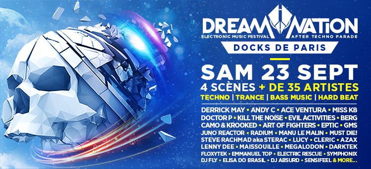 Dream Nation est de ceux-là : pendant trois jours, et en particulier le samedi 23 septembre aux mythiques Docks de Paris qui accueilleront 4 scènes (Techno, Trance, Bass Music et Hard Beat), Paris deviendra la capitale mondiale des musiques électroniques.