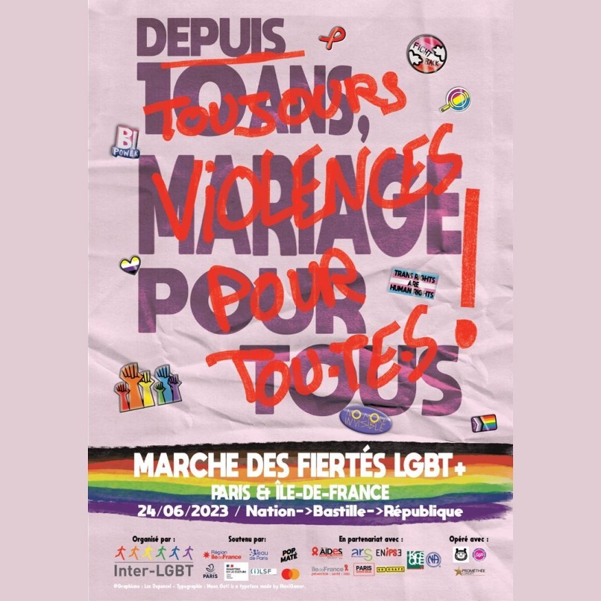 Une façon de rappeler que le Mariage pour Tous, voté il y a 10 ans, n’est pas un solde de tout compte et qu’il reste bien des progrès à faire pour lutter contre les discriminations, les violences aux personnes et pour avancer vers l’égalité des droits des personnes LGBTQIA+.