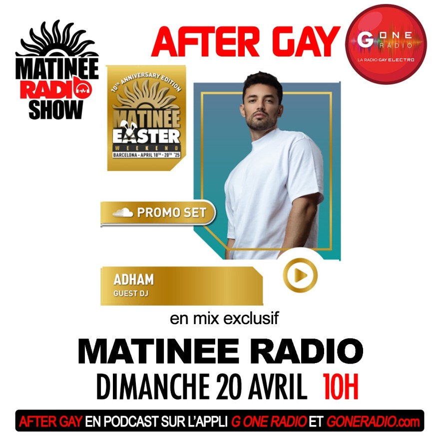 Réécoutez After Gay G One avec Matinée Radio Show by Adham du dimanche 20 avril 2025.