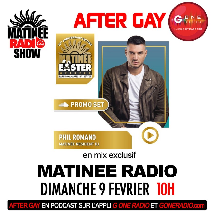 Réécoutez After Gay G One avec Matinée Radio Show Phil Romano du dimanche 9 février 2025.